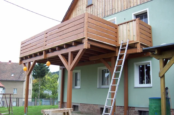 Unsere Arbeit reicht von traditionellen Dachstühlen und aufwendig gestalteten Dachkonstruktionen mit Gauben oder Hechtkonstruktionen bis hin zu individuellen Möbelstücken und maßgenauem Innenausbau. Dazu gehören auch Dielenböden und Holzbalkendeckeneinschübe, die Räumen Charakter und Beständigkeit verleihen. Ebenso entstehen bei uns Balkone, Laubengänge, Carports, Fassaden und ganze Umgebindehäuser.