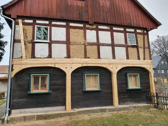 Neubau und SanierungOb behutsame Sanierung historischer Konstruktionen oder der Neubau nach traditionellem Vorbild – wir verbinden handwerkliche Erfahrung mit dem Verständnis für die besondere Bauweise. Tragwerk, Gefüge und Details wie Ritscheln werden mit Sorgfalt ausgeführt, damit jedes Umgebindehaus seine Eigenart behält und zugleich den heutigen Anforderungen gerecht wird.
